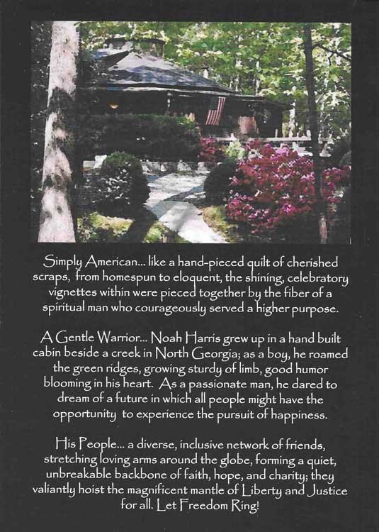 ~ We expect many of you will remember your heroes because, great and small, those who sacrifice their potential lives so we might breathe in the fresh air of infinite possibility should never be forgotten, but long honored in poetry and melody. So let this be considered a common psalm to a son, a loving community, and a grateful nation; and let it be dedicated to all the Noahs out there. And, like a psalm, maybe you’ll read through it once, and then put it away somewhere so it can be rediscovered, perhaps for a laugh, a smile, or a light in the darkness of sorrow. Maybe you’ll give it away and it will become a beacon to those who find themselves wandering in a wasteland of unfocused ideas. Maybe, as was intended, it will inspire a great notion, and you’ll re-shine your love of the Statue of Liberty, find yourself singing “The Star Spangled Banner” at the top of your lungs, and do your part to guide all the children of the future into the secure harbor of peace and liberty.