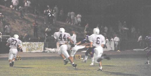 When Noah was a junior, I thought he actually might take a shot at college ball. He was always making big plays; on defense he was impressive as linebacker and fearlessly hungry to smash anyone who tried to step beyond his position. He was fast and powerful in the short bursts and was known for knocking the ball out of the quarterback’s hands. After he would thoroughly flatten his opponent, he would offer him a hand up. He learned early from me that there was no reason to be mean or ungentlemanly in a sporting event; even if others lost their cool, he would maintain his poise. On offense as fullback, he could be counted on to make yardage every time he carried the ball and, quite frequently, he would break for the big yardage gains. From this position, he was always looking for the open field. Although Noah wasn't quite as slow as Coach Thompson’s grandmother, he was often caught from behind. What his “fleet of foot” opponents quickly discovered was that, although they had caught him, they could not bring him down. I have seen him carry as many as five players down the field with him. He was exciting to watch.