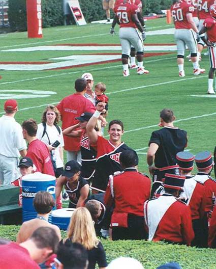 We went over to the Coliseum and athletic field that was soon to become a big part of Noah’s UGA home; it was a beautiful, blue-sky sunny day. I watched the whole thing as the male cheerleaders started showing the new guys the various stunts and lifts they had to learn as well as the basic simple things like how to clap. Anyway, I watched closely as Noah went through the routine of learning the lifts and the fight songs and all the motions they needed to perfect. I sat on the sidelines as I had so often in the past and kind of took a broader view of what was happening. That night when we went back to the inn, I knew what Noah needed to work on and that he needed to practice while it was fresh in his mind.