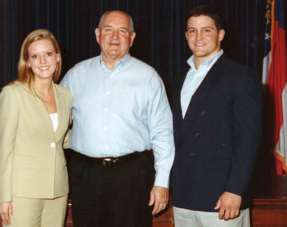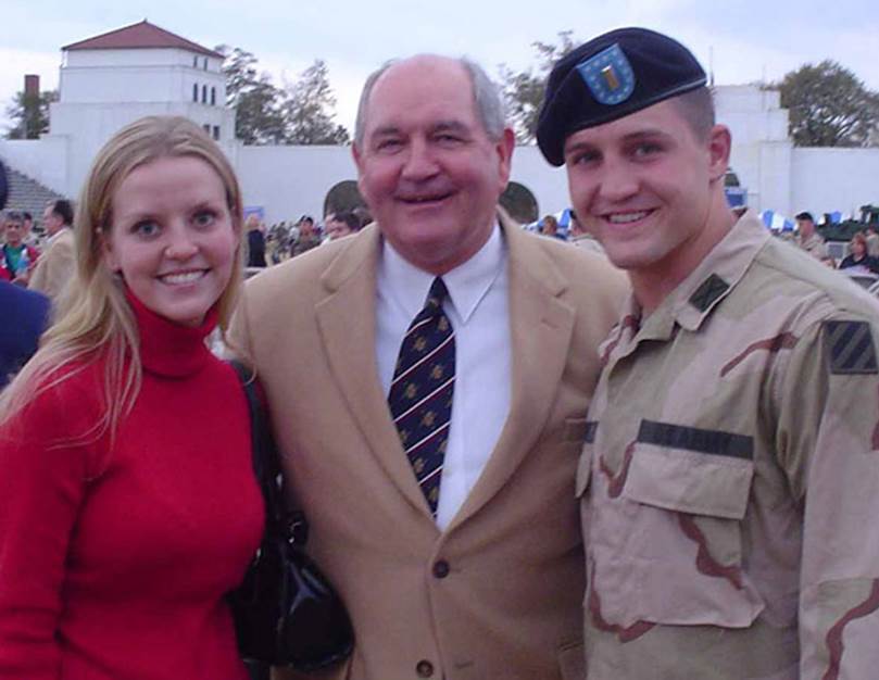 ~ They spent what Ashley has hilariously referred to as a “memorable” night with his ROTC buddies and headed straight to Atlanta. The details of his travels are a little bit sketchy for us because he was constantly on the move. One time when he called to check in, we asked, “Now, where are you?” “I’m a on the way to the governor’s office. We’re running a little late. I hope we make it.” Both he and Ashley wanted to personally express their feelings about his mission to Governor Perdue because Noah felt it was his job to do his best to help the mission succeed. If the press was going to be negative, he was going to do his best to counterbalance with positive, first-hand news from the front. Noah said, “The governor seemed a little puzzled about why I was there until I told him about all the Iraqis I knew on a first name basis, about how they were fighting for the basic liberty that we take for granted, and how much we needed his support. Maybe he wasn’t used to hearing from a second lieutenant, but that’s OK. I’m glad I went. I’ll go see him again when we get back.” That afternoon, he met up with Earl Leonard and Gene Anderson for a special luncheon. They loved that he had gone to see the governor almost as much as they loved to feed their boy. He ate it up, the food and fellowship, with gusto and showed his mentors how their lessons of faith, hope, and leadership were paying off.