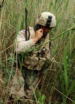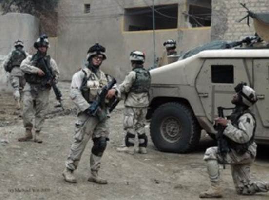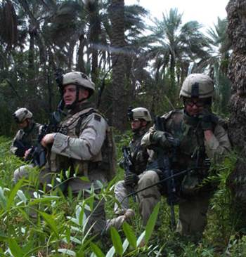 (Chuckles)After college, the regular military is a shock. It’s not like college where you go in flip flops and throw on a hat. I learned to drink coffee (more chuckles), but I like the discipline. Everyone is trained so well that they act with instinct. Training starts and you see a bunch of kids; and then you train, and the culmination is a group of men who operate as a team... There are some trees in Ba'Quba, and they irrigate the palm groves. So you go from a hot, arid city to the lush groves. We’re always looking for insurgents and if it’s slow we get down and interact with the people. I have an interpreter who helps me talk to the sheiks and muktars to see what they are thinking. It’s difficult for the guys because you fight one day and you hug the populace the next. And you never know who you are talking with. Like I could be talking and smiling with a terrorist, asking, “Is everything going OK for you?” You never know, I might face him in battle that night. Still, it is working. We are empowering the people, giving them jobs and a future.