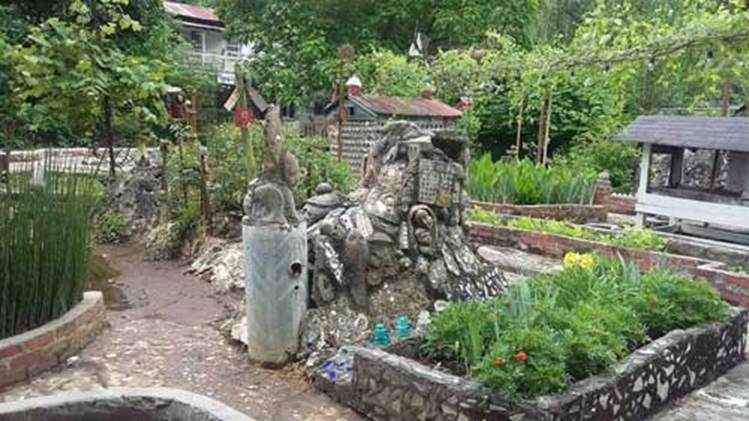 Raised in a green, grassy clearing,