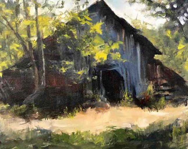 The old barn is casting a tall shadow,