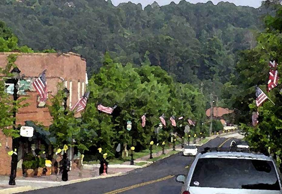 I will never forget the police escort to town. In my experience, it was so surreal because the police were leading instead of following me. Lucy and Ashley burst into tears of pride as we rolled by mile after mile of yellow ribbons, flags waving, and a sign that broadcast, WELCOME TO Gilmer County, Home of 1st Lt. Noah Harris. When we got to town, I had a hard time driving because it was just so amazing. Every possible spot in view was filled with a waving Old Glory or a yellow ribbon. They were everywhere!
