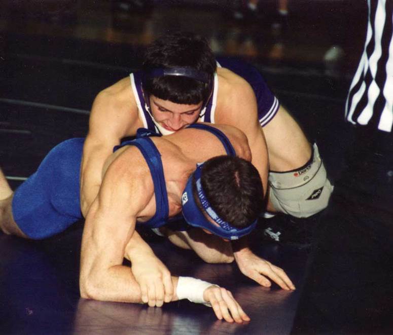 When the 103 took the mat, he went ballistic. He re-enacted every move using me as his opponent. He had me in a headlock a couple of times and was hollering like his life depended on the outcome. To him it was like each of his new friends was putting his courage on the line for the Bobcats, and it meant something to Noah. By the time the match was over, I was exhausted and though I can’t remember who won that day, I knew a wrestler had been born. When Coach Mark and Coach John came over to thank us for being there, Noah asked, “Coach, can I do that?” There was only an eighth-grade team in the middle school at the time, but Coach Mark laughed his famous, face-splitting, joyous exhalation and Coach John said, “Well, it’s the end of the season. We only have a few practices left, and you’re only in fifth grade.” I held my breath as he continued, “But if your Mom doesn’t mind, you can come by tomorrow and see what you think. Bring your shorts to the field house when you get off the bus.” We let him skip karate for two weeks.